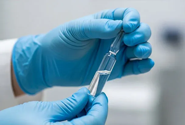 Медсестра держит шприц в руке